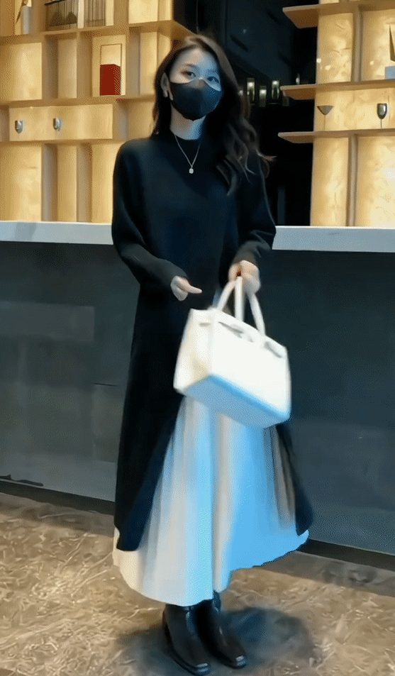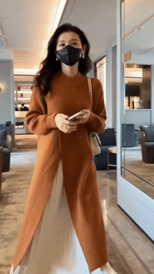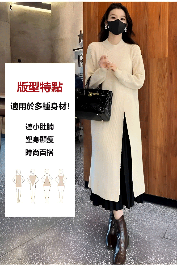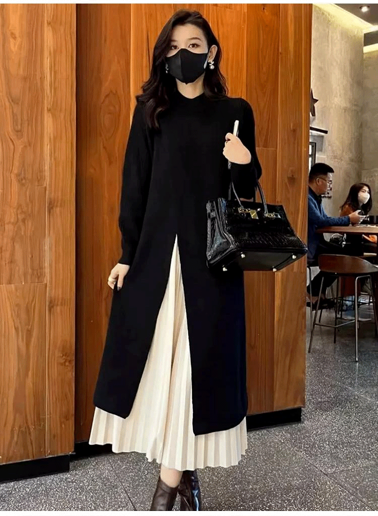 氣質圓領針織毛衣開叉連身裙