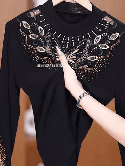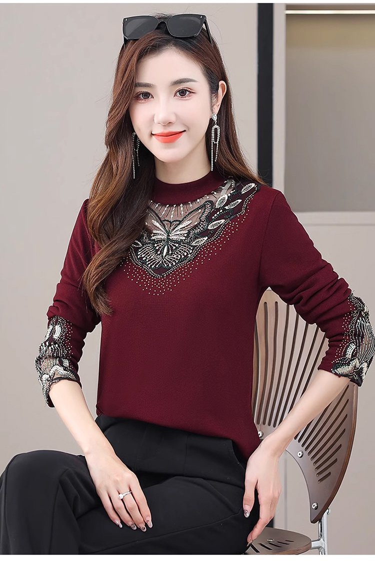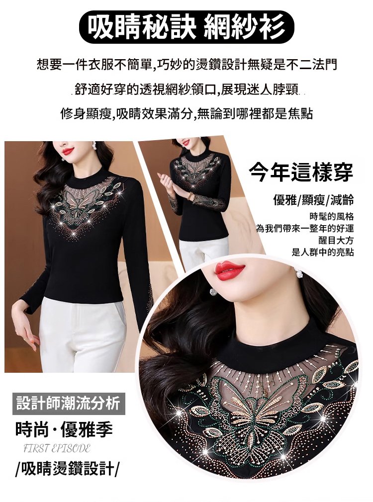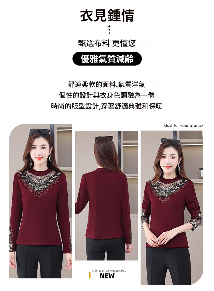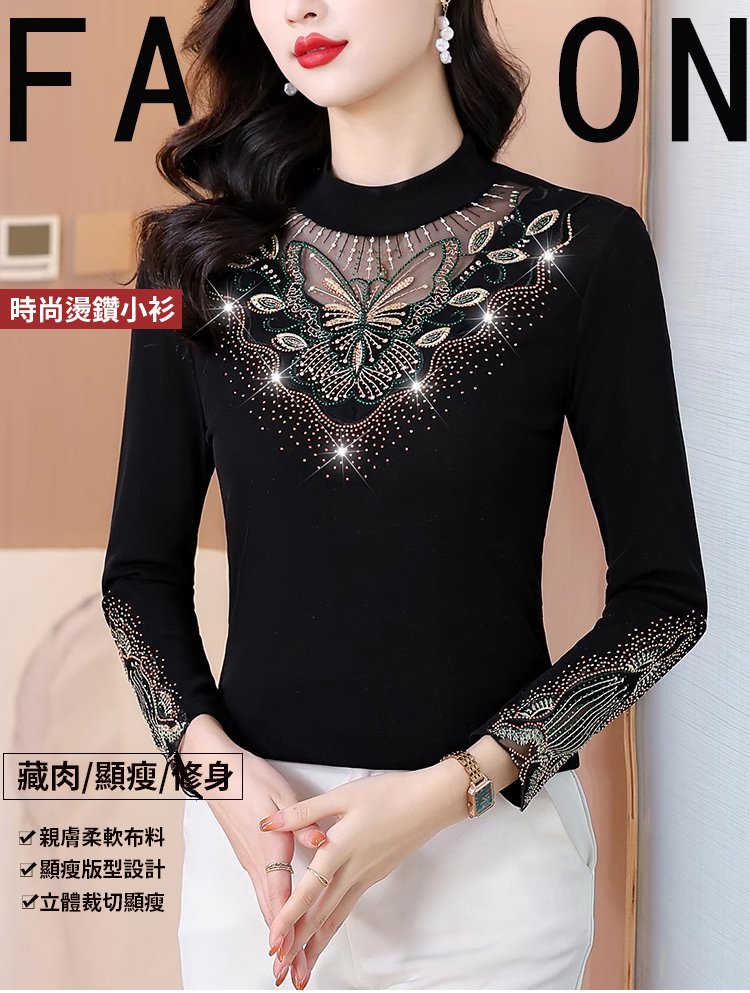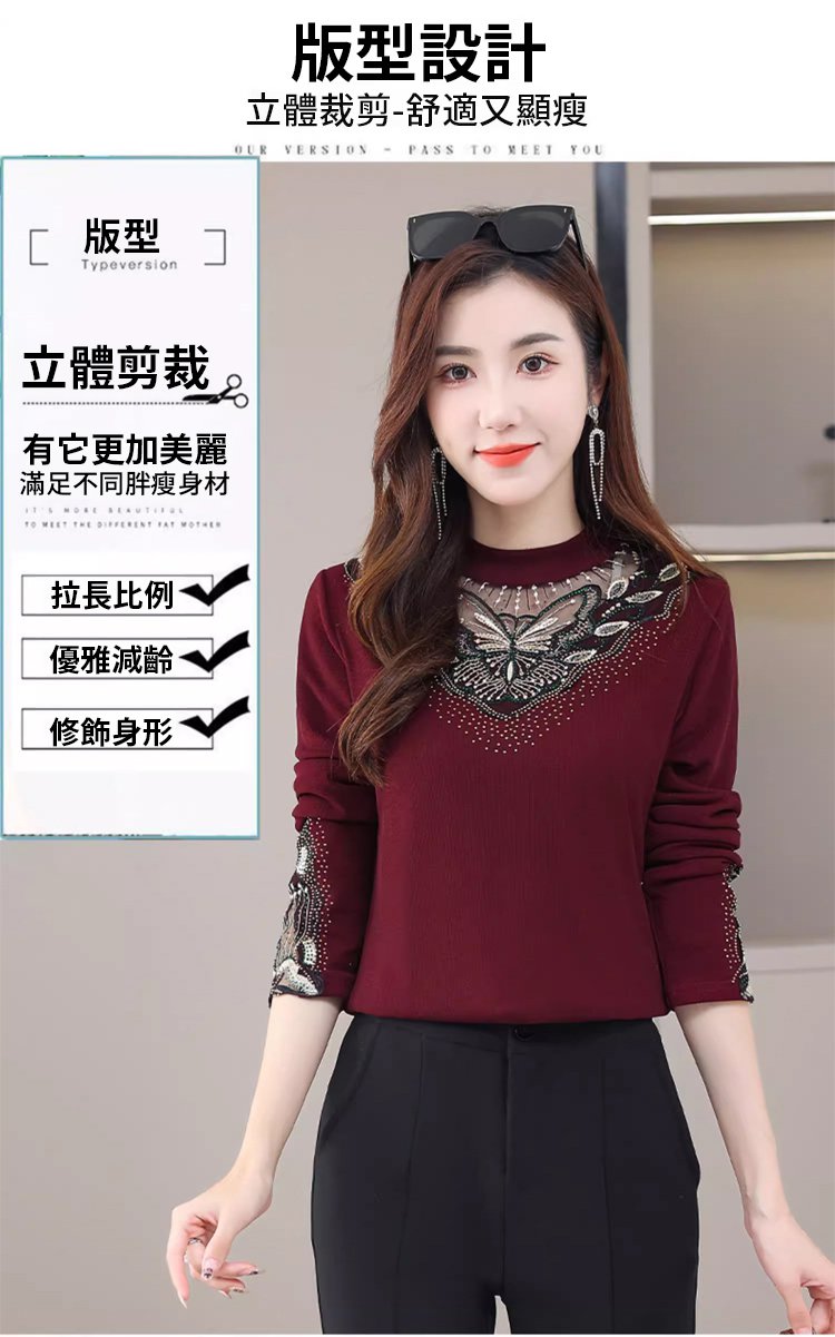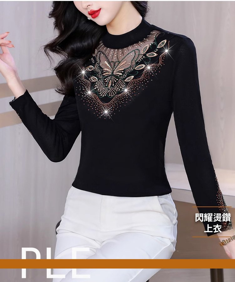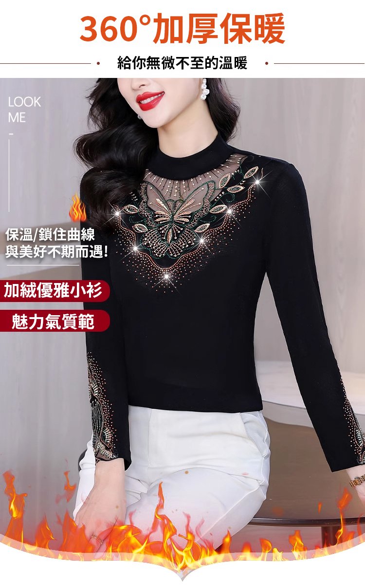 加絨網紗鏤空性感打底衫
